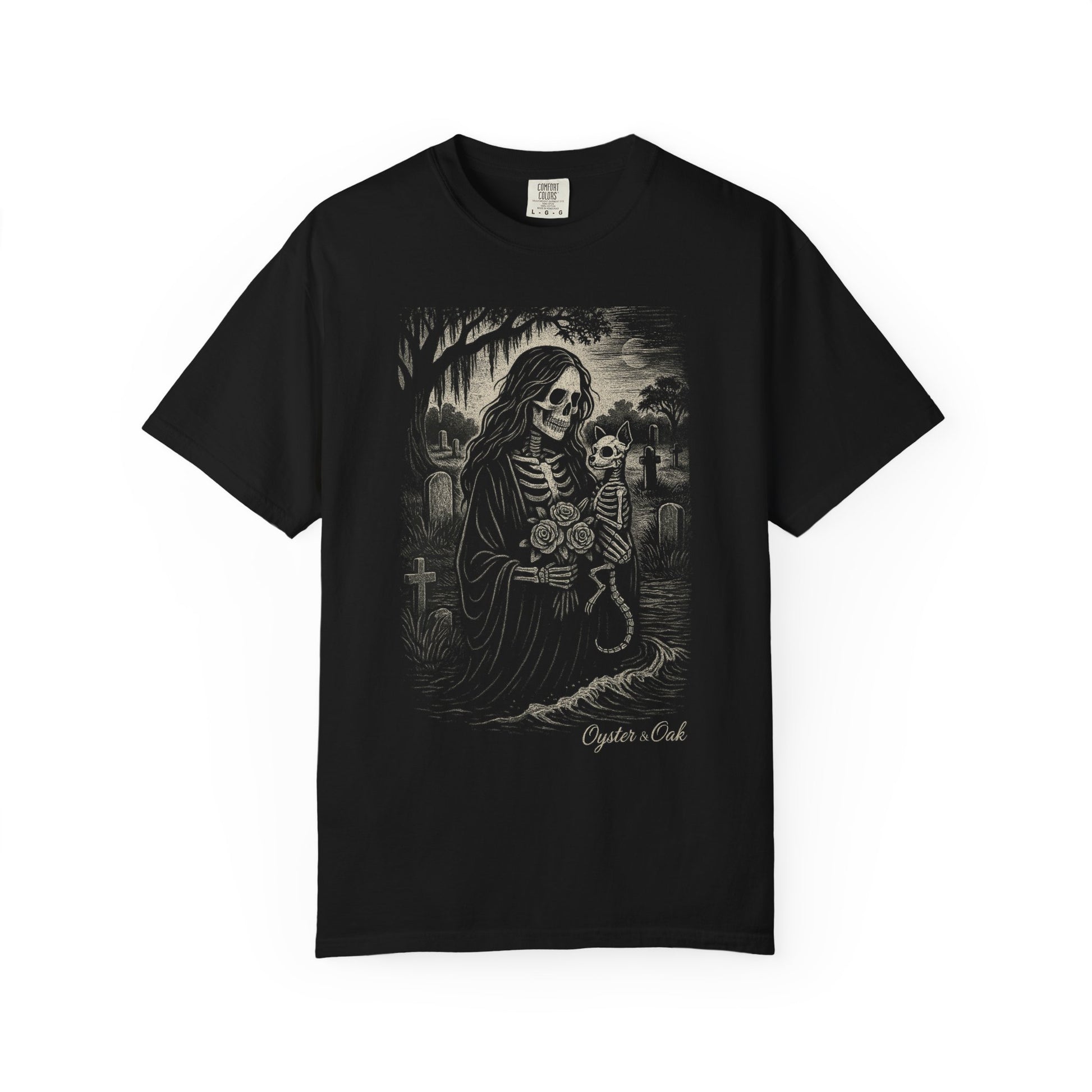 The Mourning Tide T-shirt exudes a mystical and edgy vibe, perfect for those who enjoy dark and unique designs. It is relevant for Halloween enthusiasts, gothic fashion lovers, and those who appreciate art with a twist. Wear this T-shirt for Halloween, costume parties, or casual outings to showcase your individual style.